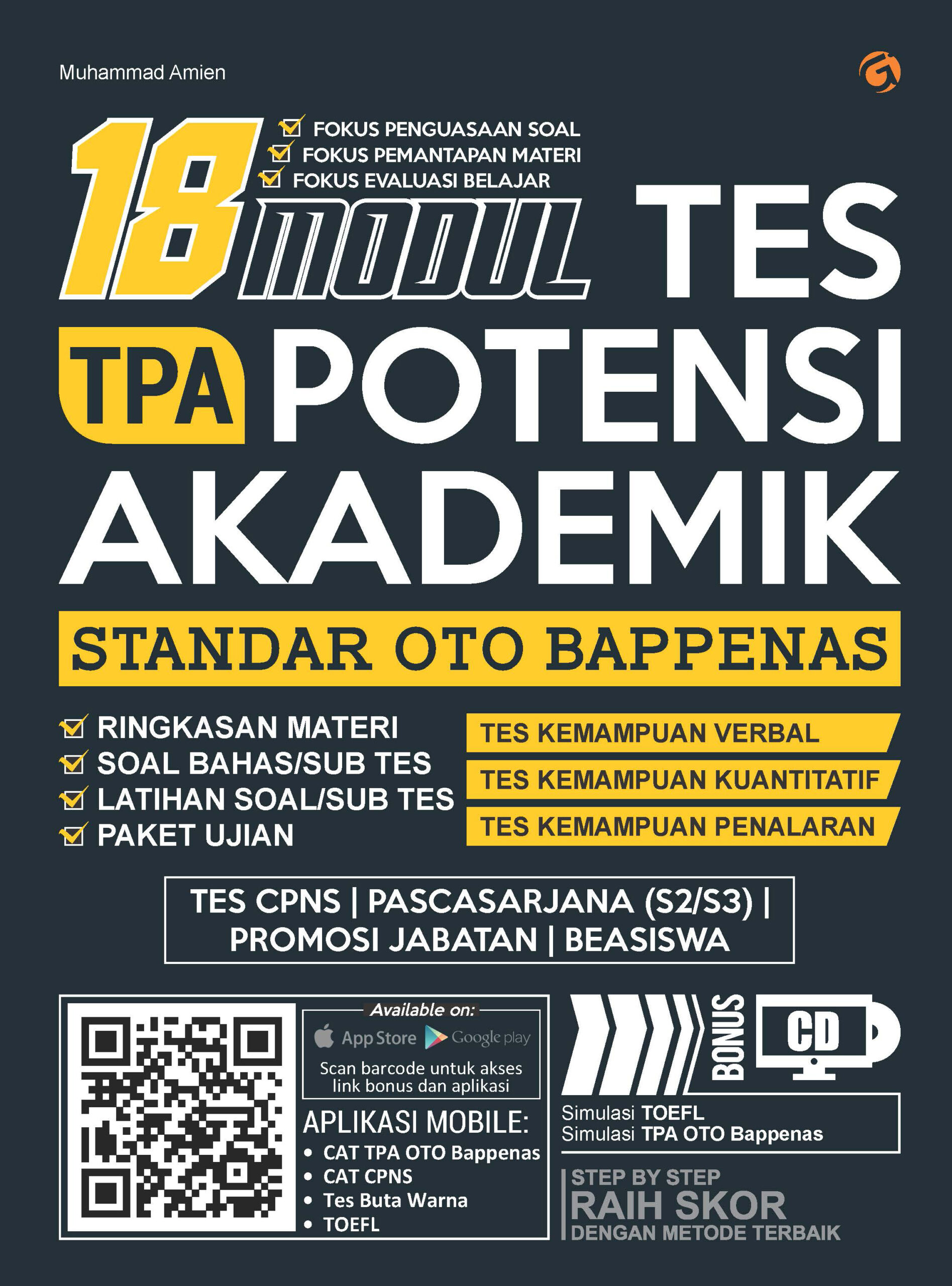 Tes Potensi Akademik (TPA) dirancang untuk mengungkap potensi intelektual seseorang. Acuan dalam pelaksanaan TPA adalah tes yang dikeluarkan oleh OTO BAPPENAS. Ketika mengikuti TPA, terutama OTO BAPPENAS, seperti menjadi momok yang menyeramkan. Apalagi kalau bukan karena tingginya tingkat kesulitan soal. Dalam buku ini materi disajikan dengan metode terbaik, dengan pendekatan pengajaran di kelas. Tersaji dalam 18 Modul yang disusun secara urut dan ringkas agar lebih mudah dipahami. Setiap modul terdiri atas ringkasan materi dan 3 set soal, yaitu: