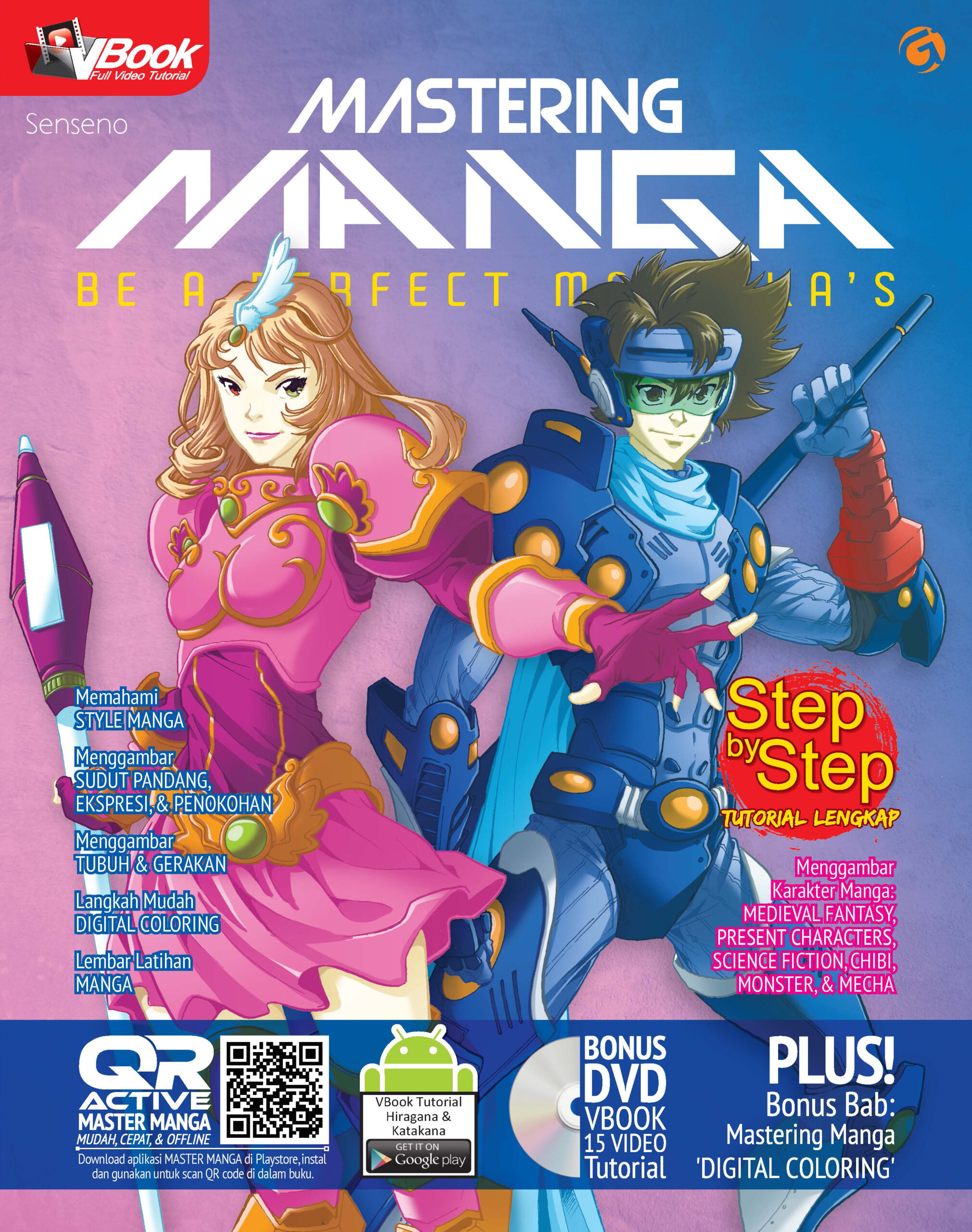 Belajar membuat karakter manga dalam buku ini menjadi semakin komplit dan menarik. Selain karakter-karakter casual, medieval fantasy, futuristic science-fiction, pembaca juga akan belajar membuat karakter bertema chibi, monster, dan mecha. Plus bagaimana mewarnai hasil karyamu menggunakan Photoshop. Seperti halnya Gen dan Fai, buku ini telah menunjukmu sebagai teman belajar.
