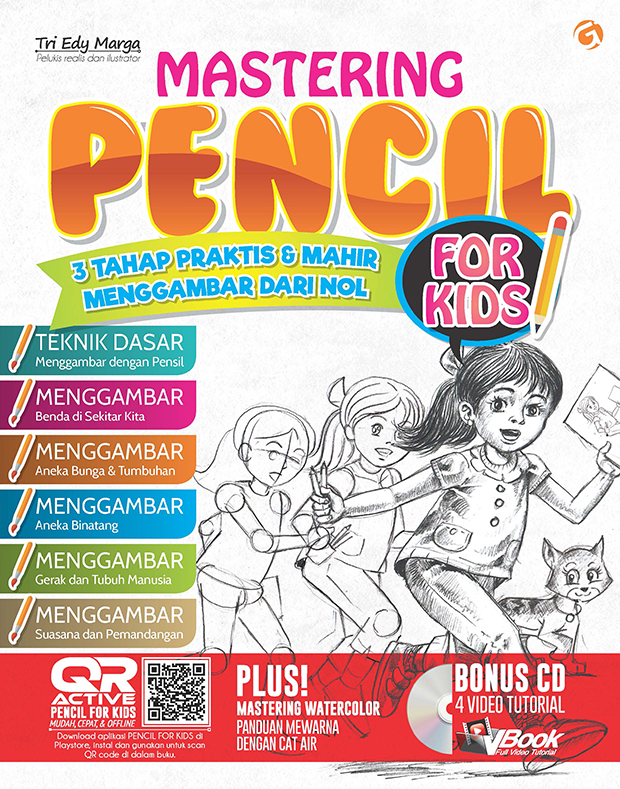 Tak hanya menggambar dengan pensil, ada pula bonus bab yang mengenalkan teknik menggambar dan mewarnai dengan cat air. Pastinya buku ini menjadi pilihan tepat untuk mulai belajar menggambar dari nol.