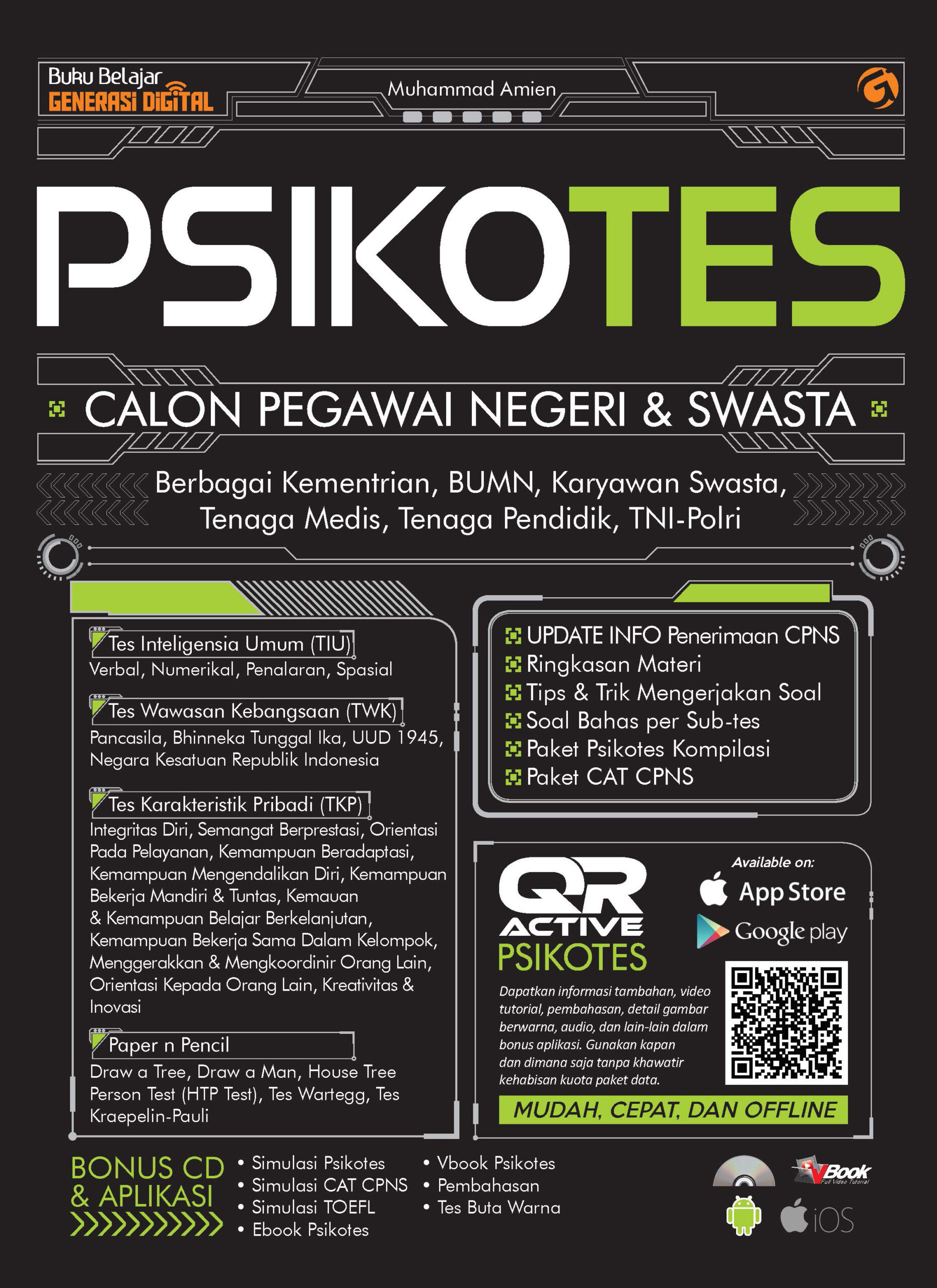 Materi dan Latihan Soal (Tes Inteligensia Umum, Tes Wawasan Kebangsaan, Tes Karakteristik Pribadi), berisi ringkasan materi dan latihan soal untuk mempersiapkan menghadapi psikotes dan ujian CPNS.